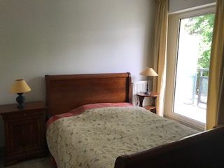 -deux chambres donnant sur une cour arborée , très calmes , une première de 11 m² avec placard , une deuxième de 13 m² avec placard , balcon et salle de bains incorporée ( suite parentale ) ,