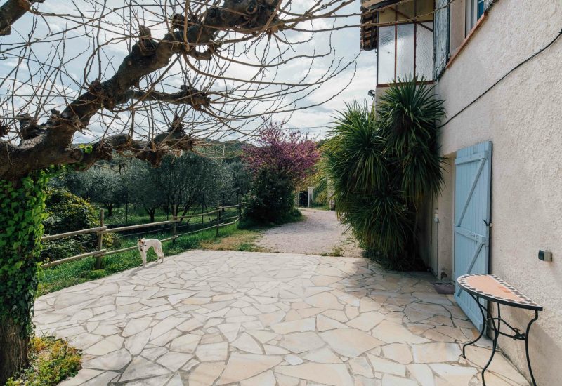 Maison en cul de sac d’un chemin de terre faisant suite à un chemin comprenant 4 dos d’âne (merci les gentils voisins!), sans vis à vis, avec portail électrique, surplombant la Nartuby (rivière) entre forêts et montagnes.