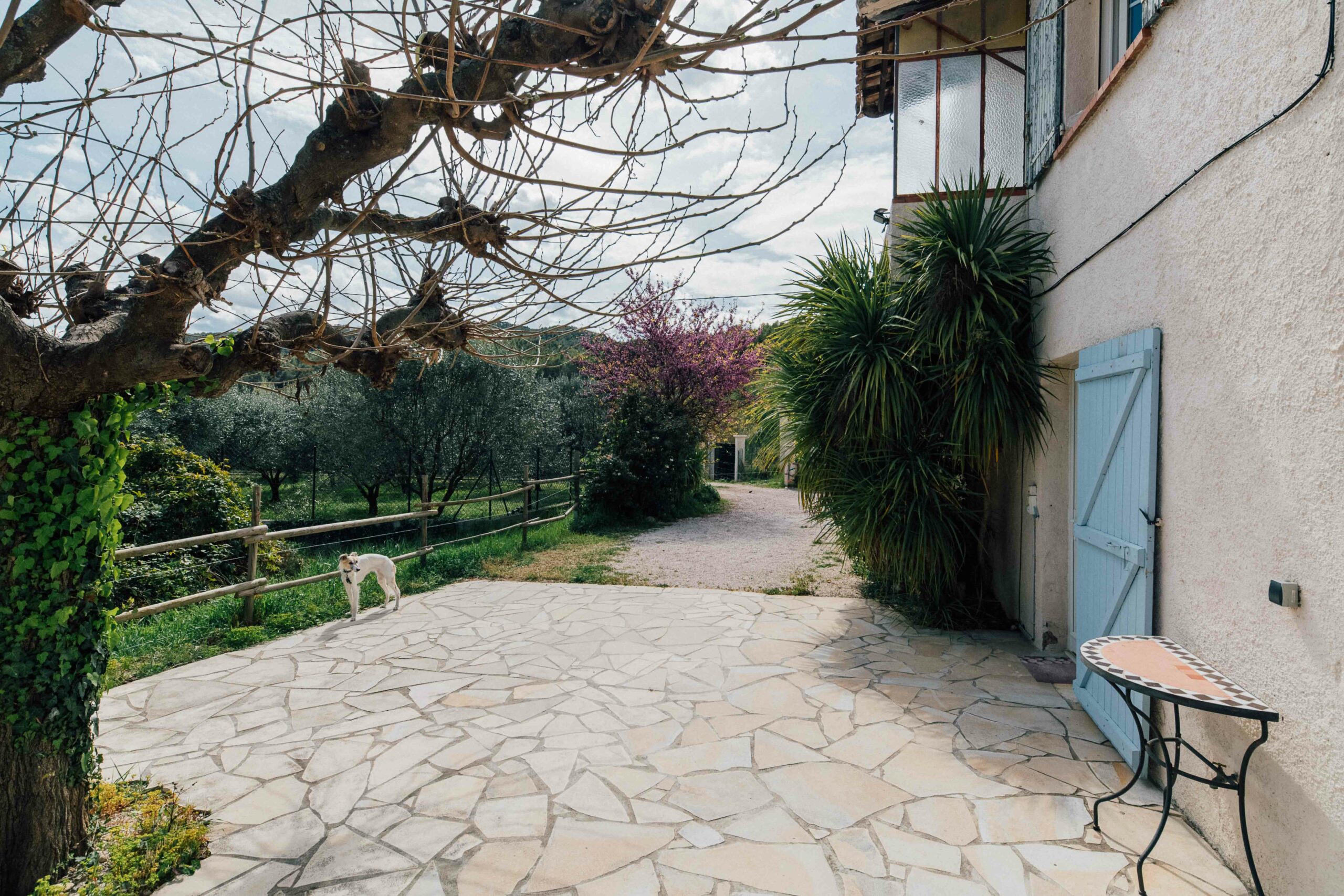 Maison en cul de sac d’un chemin de terre faisant suite à un chemin comprenant 4 dos d’âne (merci les gentils voisins!), sans vis à vis, avec portail électrique, surplombant la Nartuby (rivière) entre forêts et montagnes.