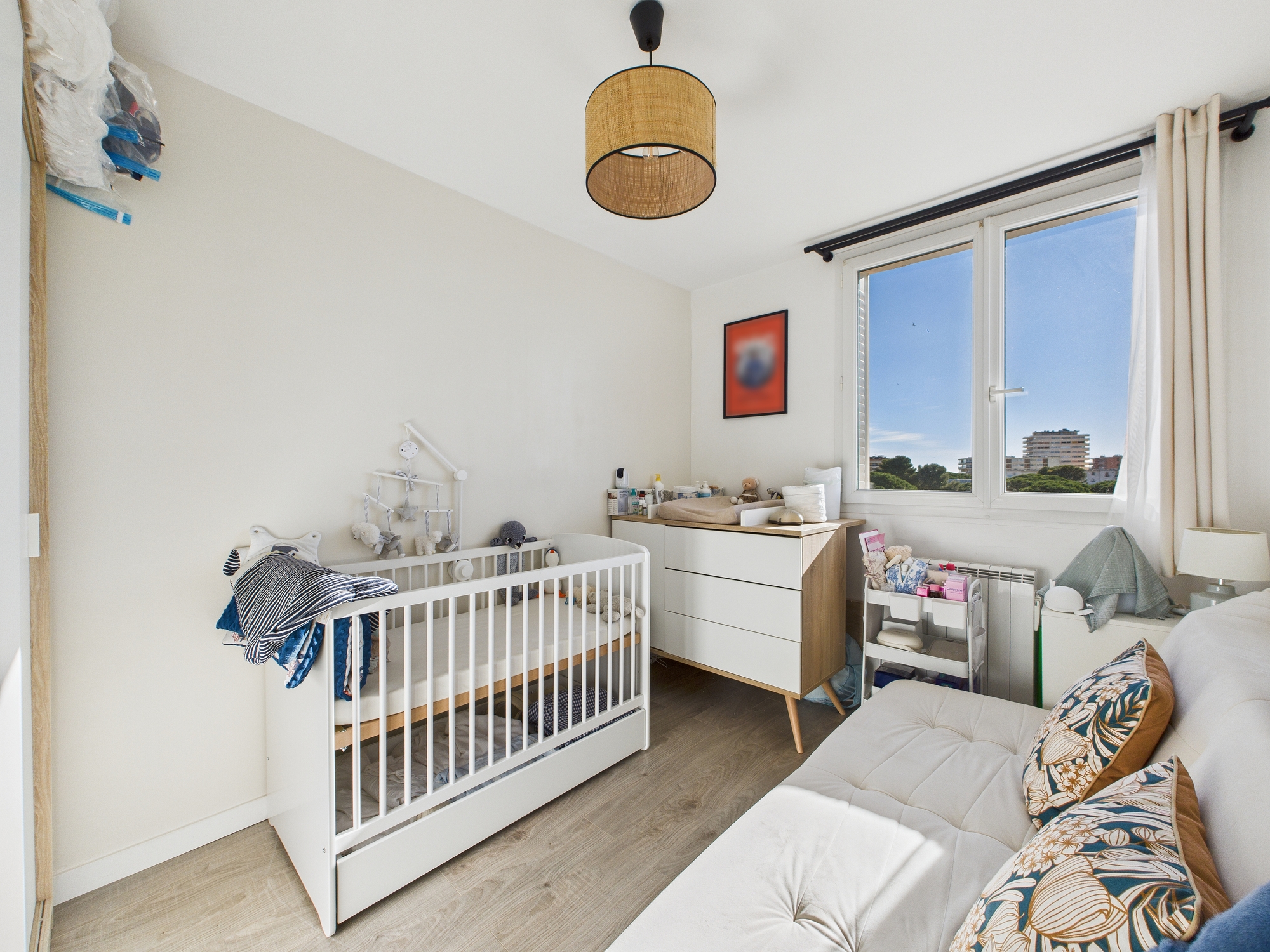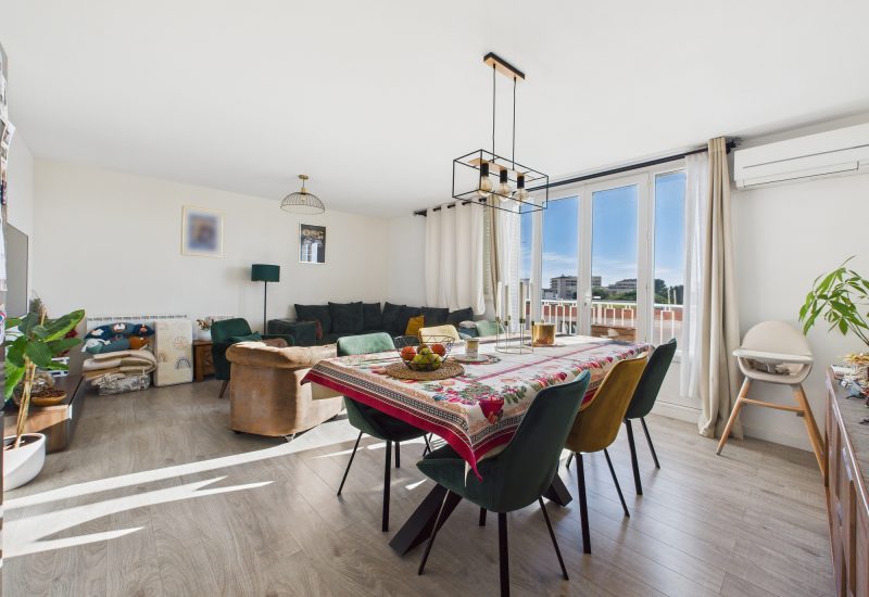 -Un balcon avec vue mer vient compléter l’espace de vie, offrant un cadre agréable au quotidien.
